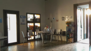 Ми прямуємо до 11 павільйону ВДНГ Києва. Саме тут знаходиться Всеукраїнський центр адопції безпритульних тварин Patron Pet Center, і саме в цей час починається вигул собак. Усі ці подробиці ми заздалегідь дізнались, переглянувши їхню сторінку в інстаграм. Усередині павільйону нас зустрічає великий хол зі сходами, де прямо навпроти входу розміщений стенд із логотипом та назвою центру, прикрашений до Геловіну. Ліворуч – будівельні матеріали, а праворуч – стіл, за яким сидить пані. Ми підходимо до неї та починаємо розпитувати про притулок. Нас одразу виправляють, що це центр реабілітації тварин, а не притулок. “Наша мета якнайшвидше реабілітувати та прилаштувати тварин у родини, щоб вони не жили тут вічно, як у притулку, а знаходили свої сім’ї”, – пояснює пані. Після чого запрошує адміністраторку Олександру Пачітто розповісти нам більше та показати всіх мешканців.